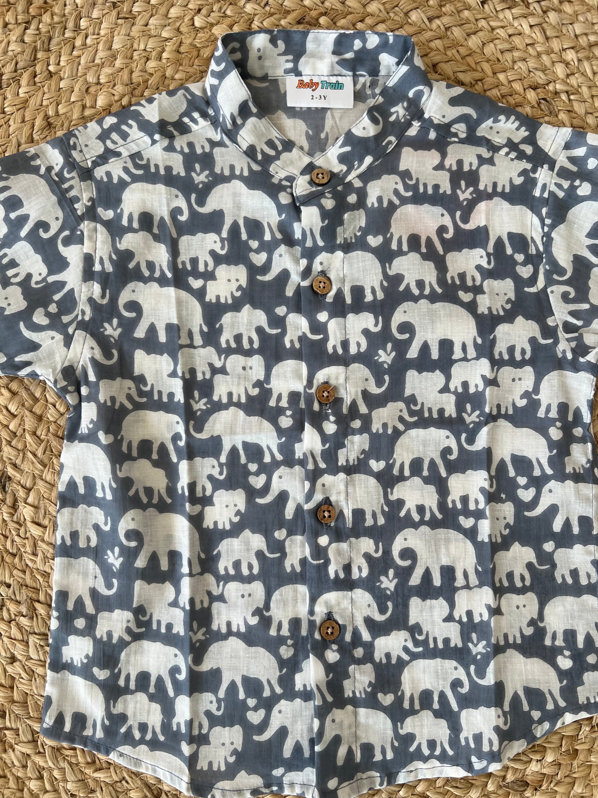 Let your little ones feel comfortable in our cotton shirt and bloom in style with our blue shirt with elephant prints.