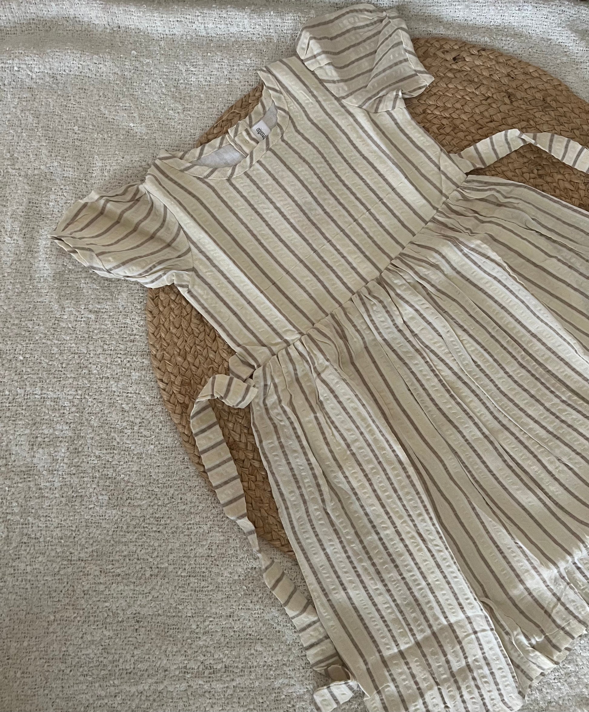 Let your little one’s feel comfortable in this cream colour cotton frock with stripes design.