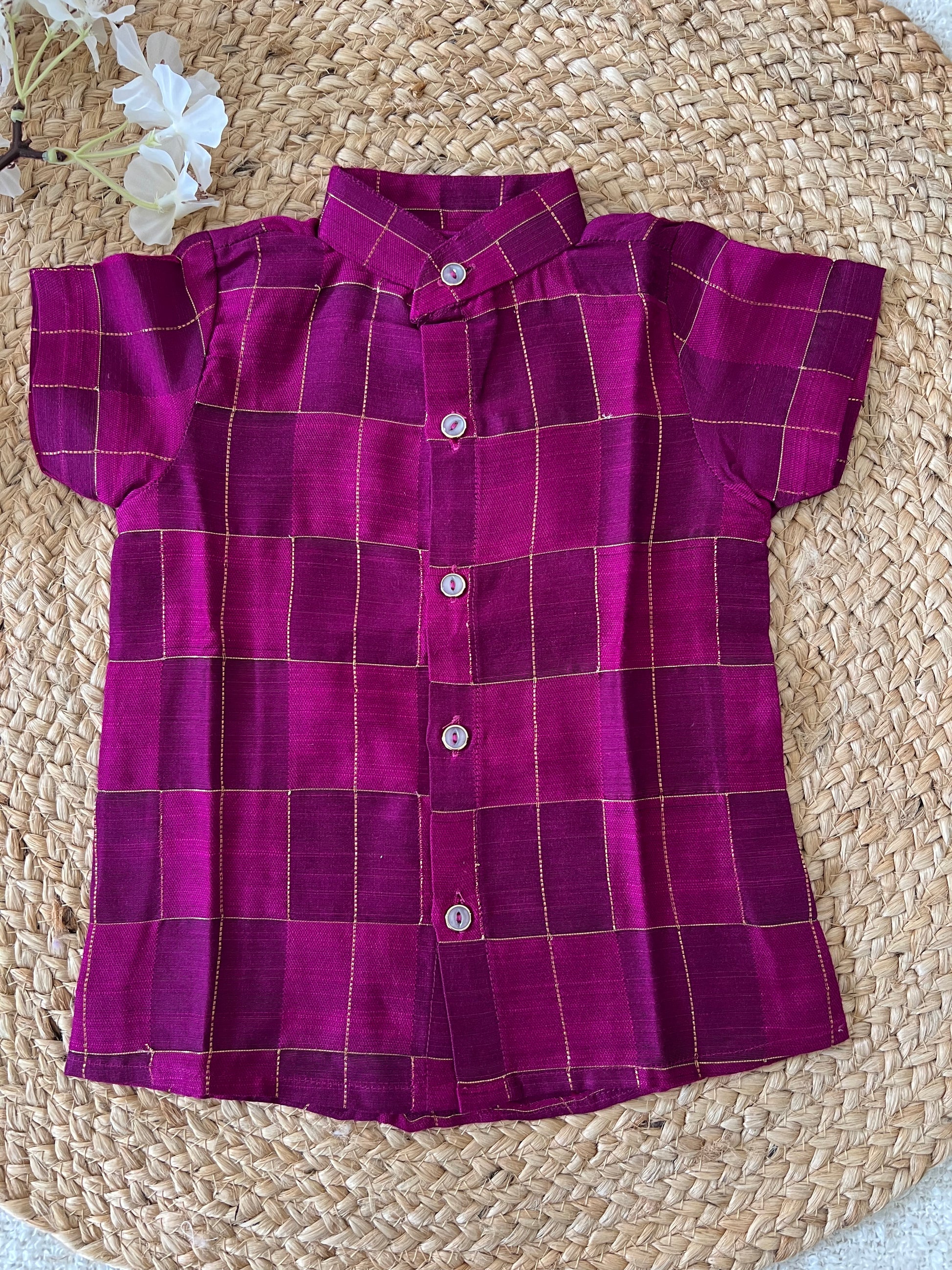 Let your little one’s feel comfortable in our silk cotton shirt and bloom in style in this dark pink shirt with checks and golden stripes.