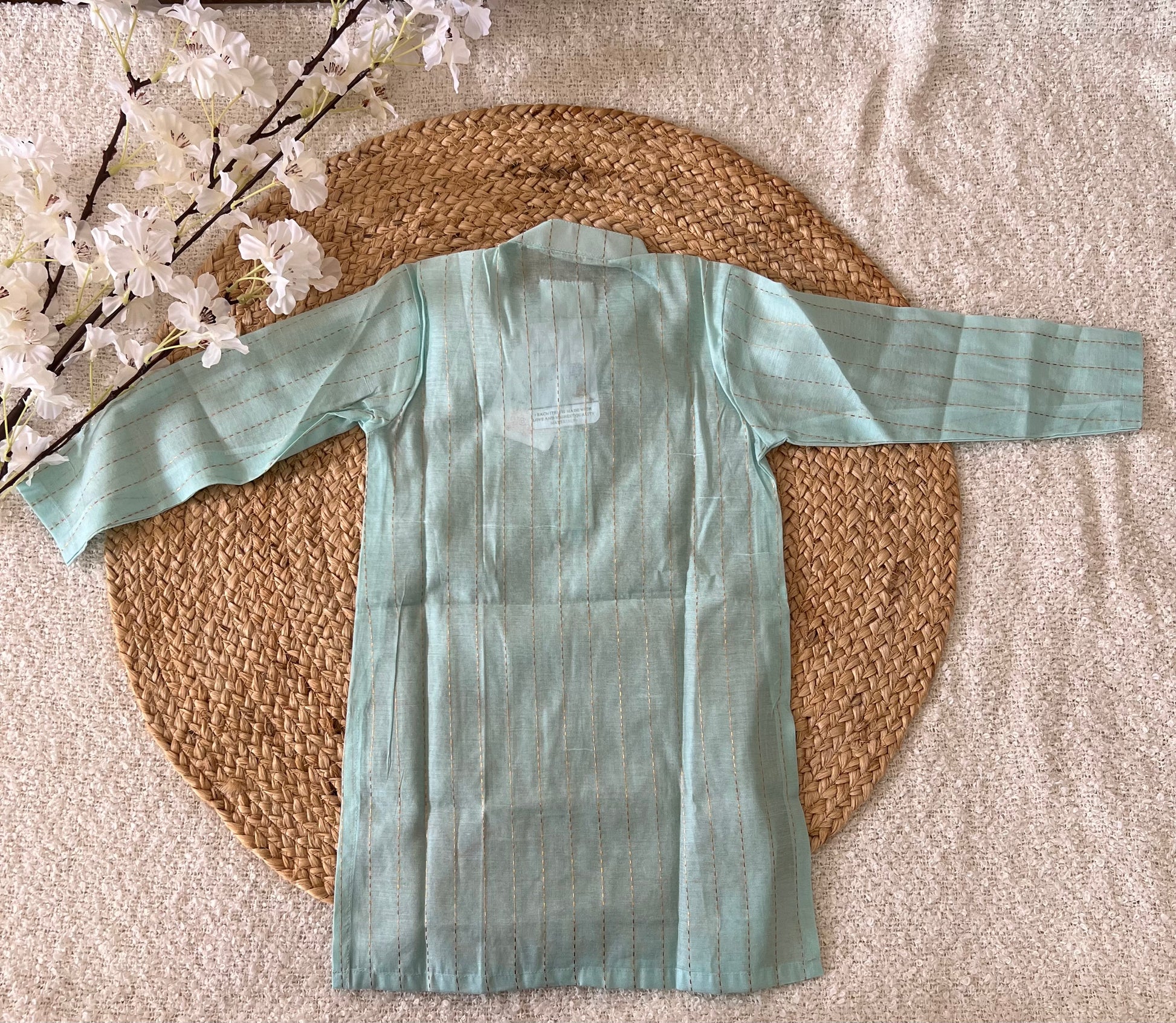 Let your little one’s feel comfortable in our light blue ethnic shirt and bloom in style in this light blue shirt with gold stripes.