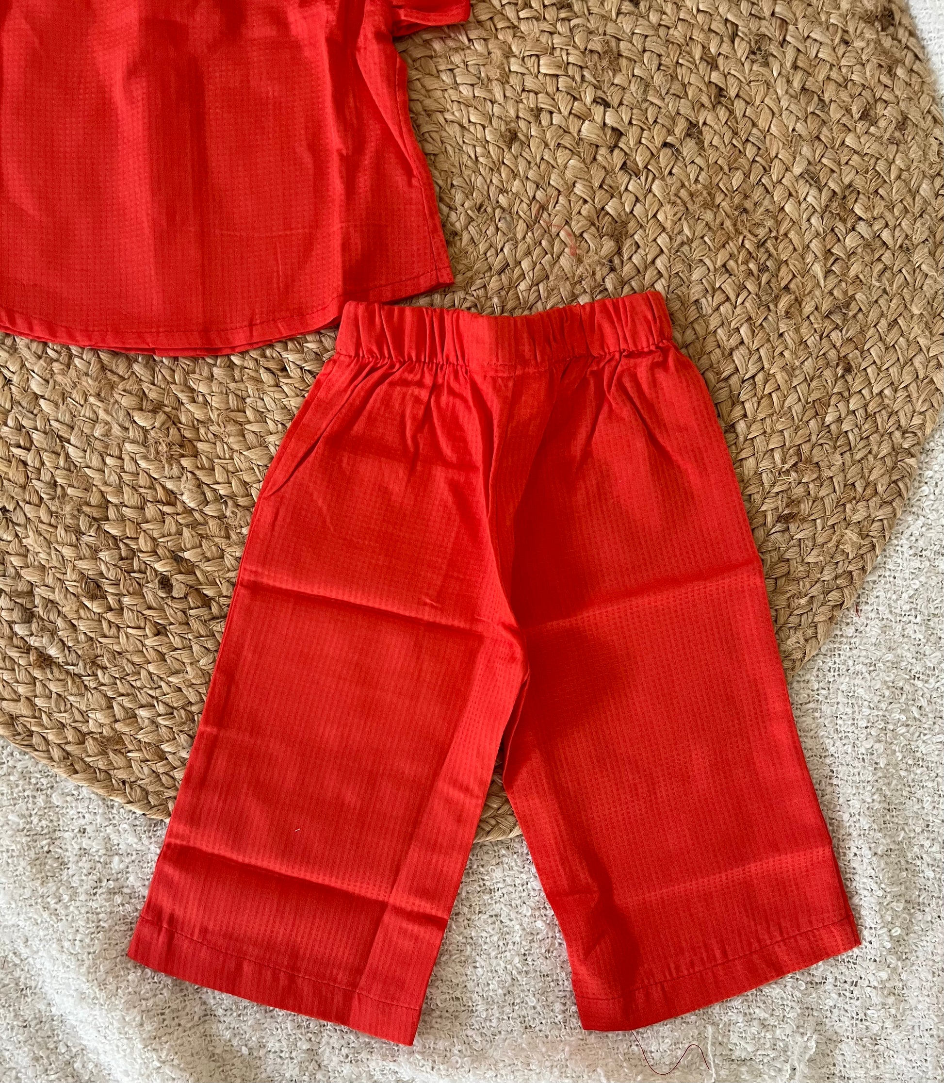 Let your little one’s feel comfortable in this orange colour cotton co-ords.