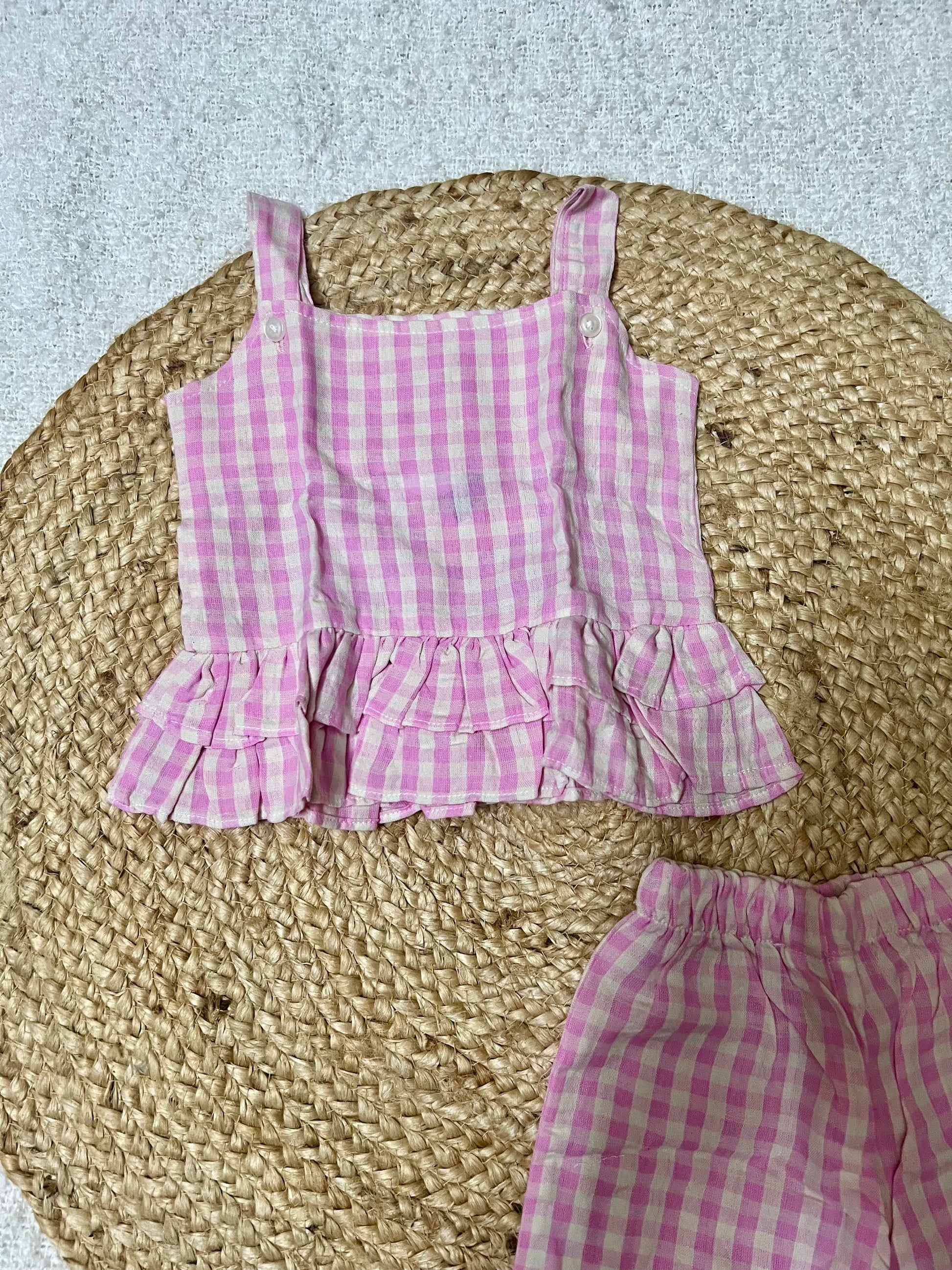Let your little one’s feel comfortable in this cotton pink checked co-ords