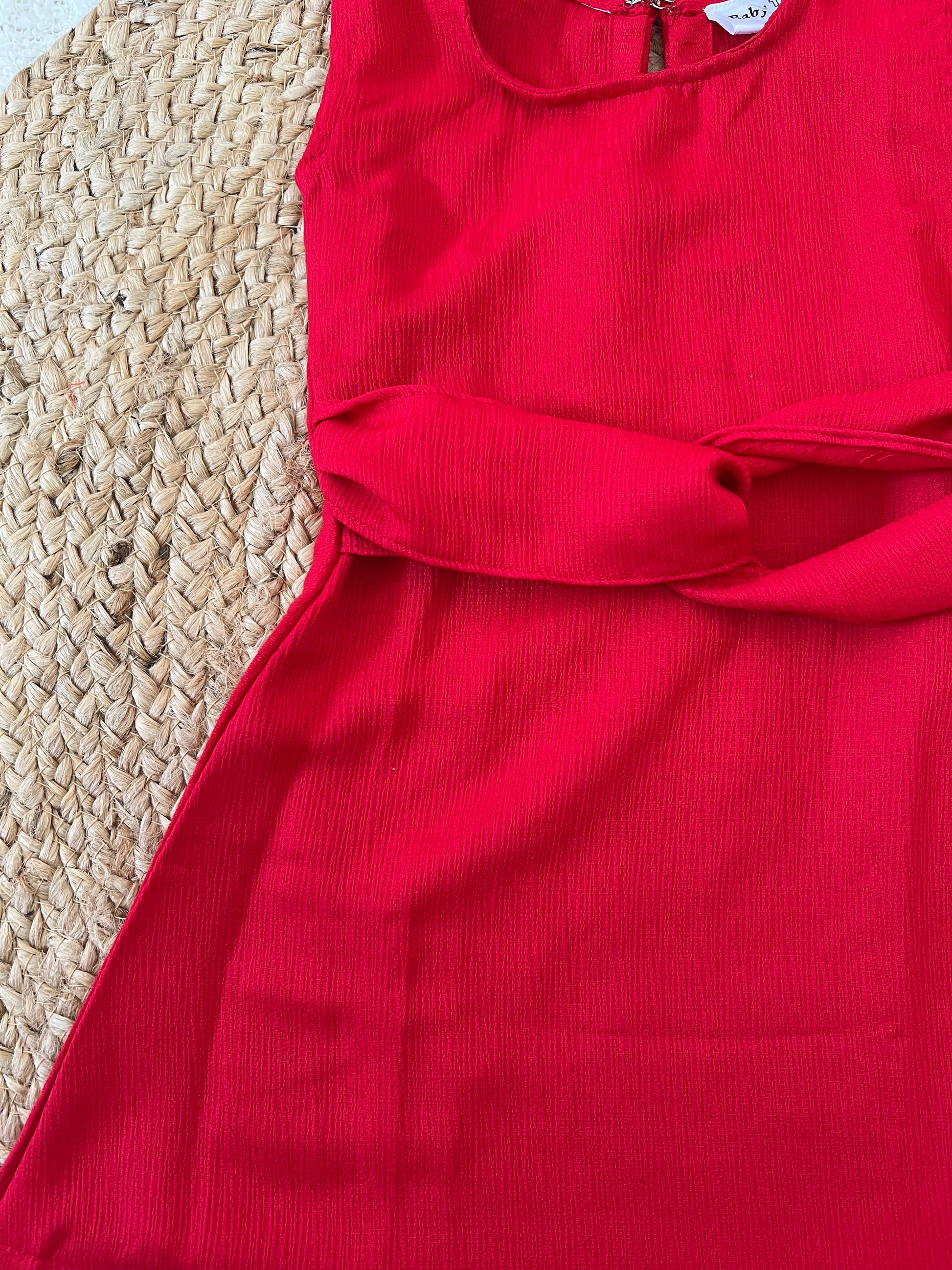 Let your little one’s feel comfortable in this red chiffon frock with interlocked lace in front.