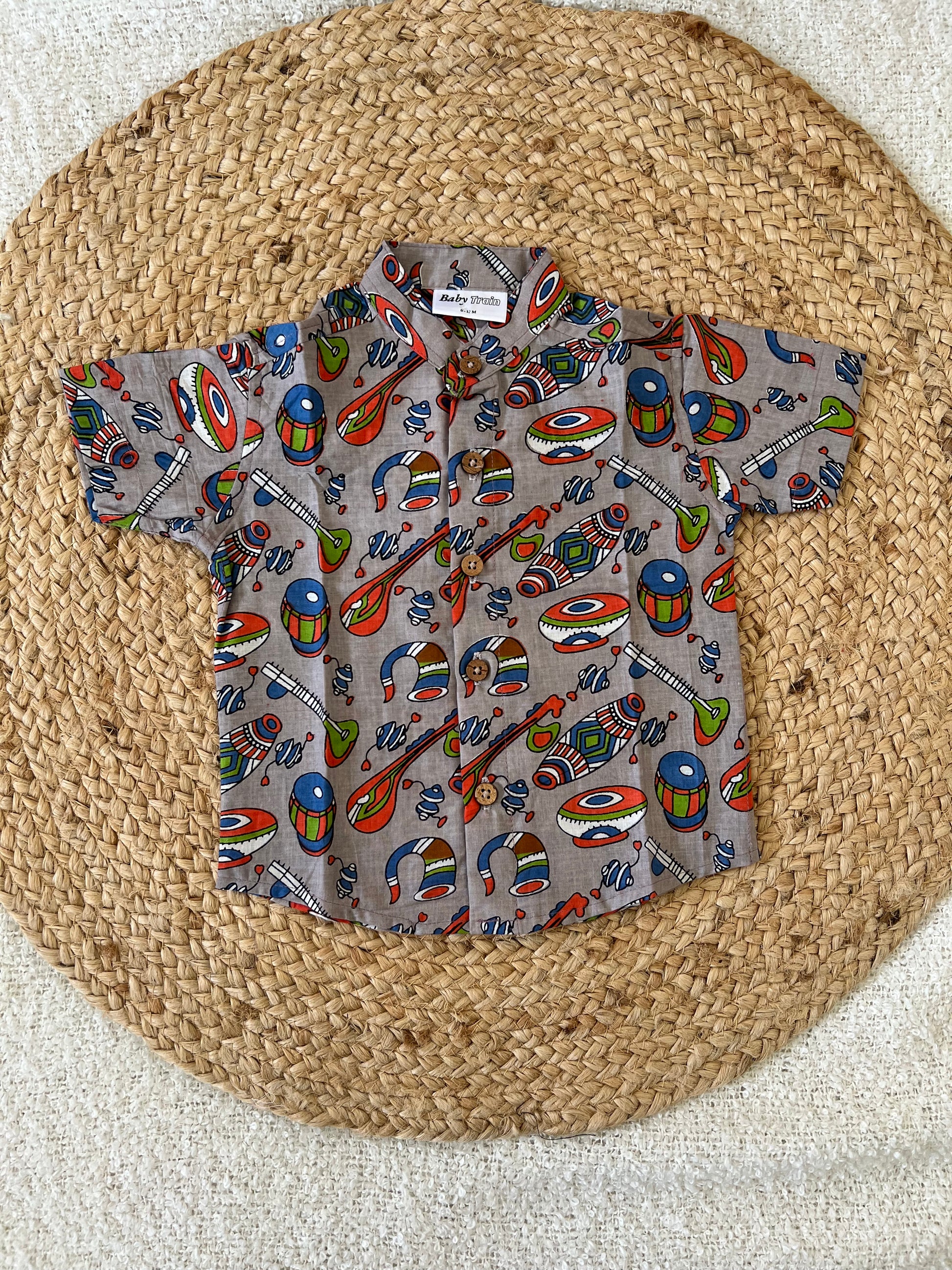 Let your little one’s feel comfortable in our cotton shirt and bloom in style with our grey shirt with musical instruments design.