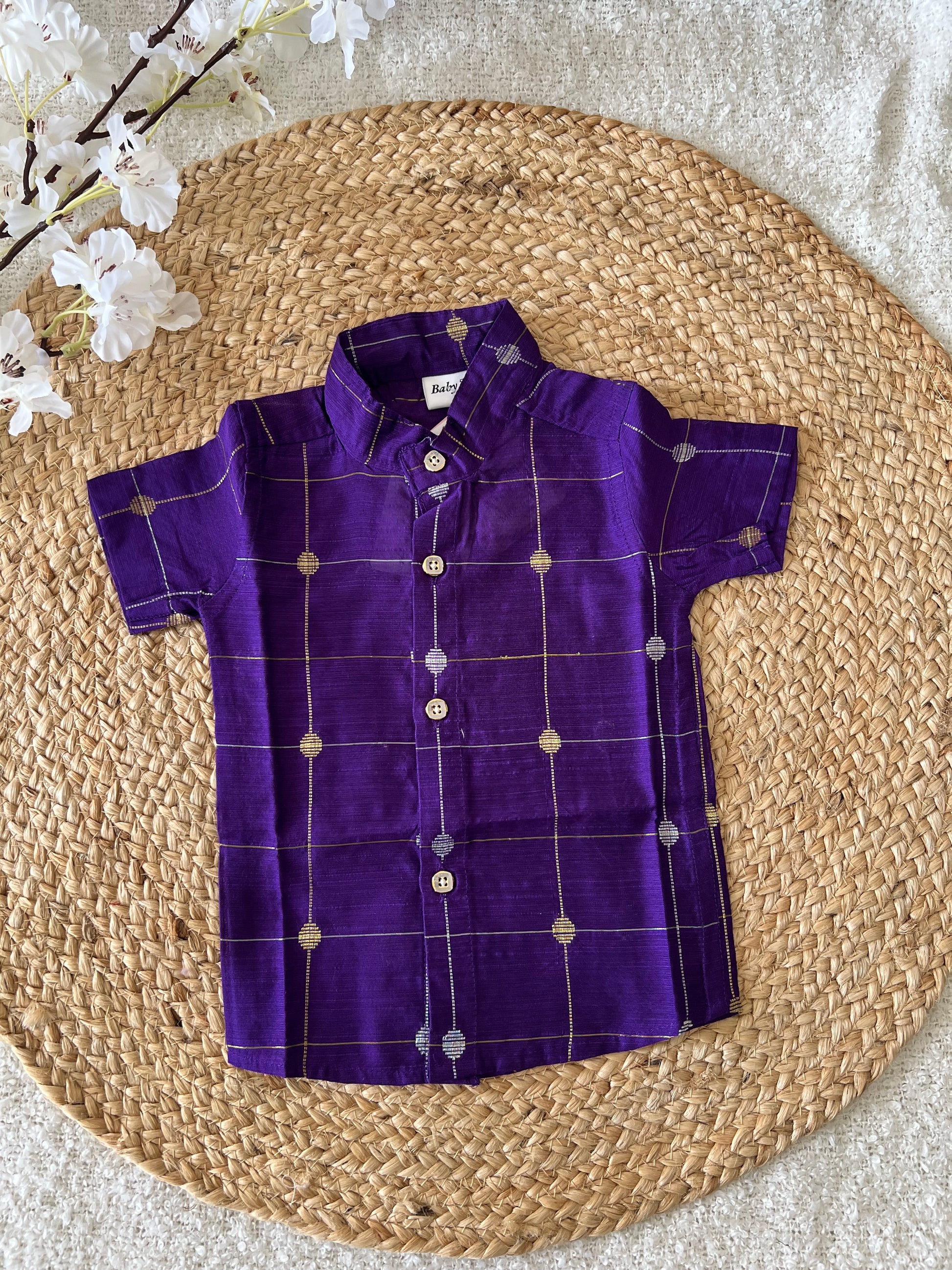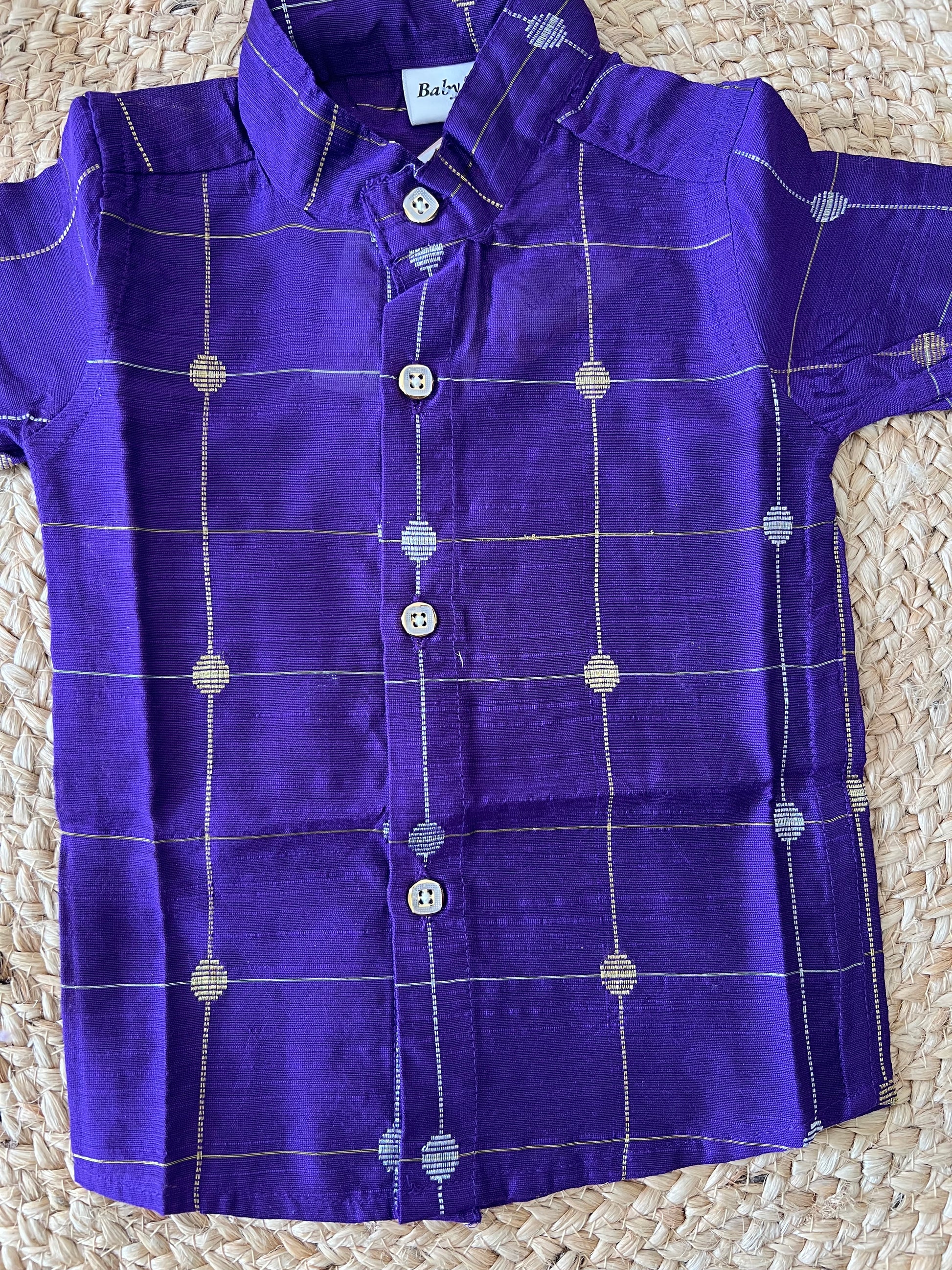 Let your little one’s feel comfortable in our silk cotton shirt and bloom in style in this violet shirt with gold dot and lines.
